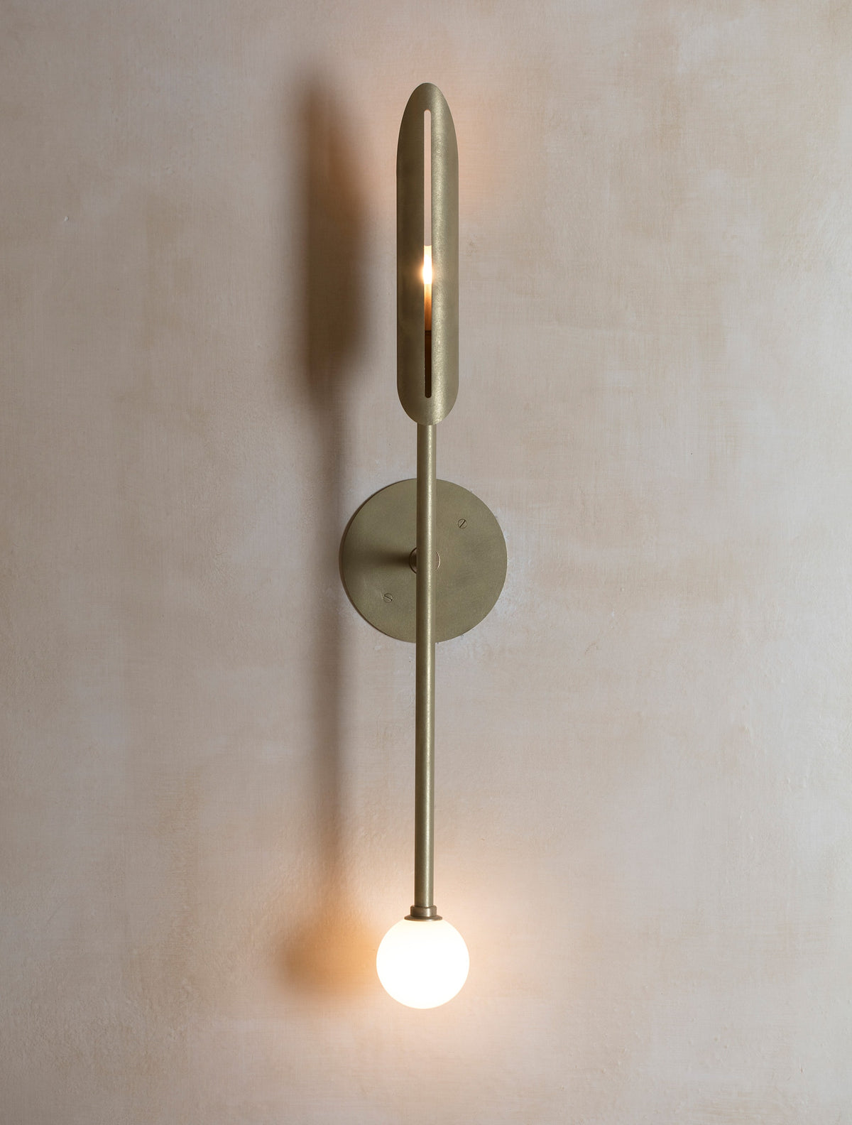 - At first glance, the Voyager Orb Sconce captivates with its clean, flowing lines, a contemporary dance of form inspired by fundamental geometric shapes. The central body of the sconce is not simply constructed; it is artistically woven, creating a tactile, three-dimensional texture that invites closer inspection. This intricate metalwork catches the light from within, casting subtle, dynamic shadows that change throughout the day, making the sconce a captivating piece even in daylight.
