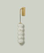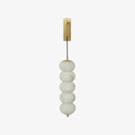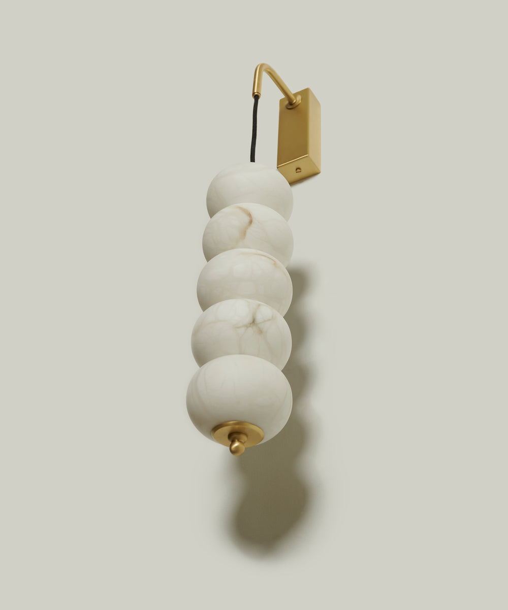 - At the heart of the Campanula sconce lies its breathtaking alabaster diffuser. This is not a single, monolithic shade, but a sophisticated composition of five individually crafted, rounded elements. This layered structure allows the light to interact with the stone in a dynamic dance, producing a play of luminosity that changes from every angle. The design invites the eye to travel along its form, discovering new lines and shadows throughout the day and night.