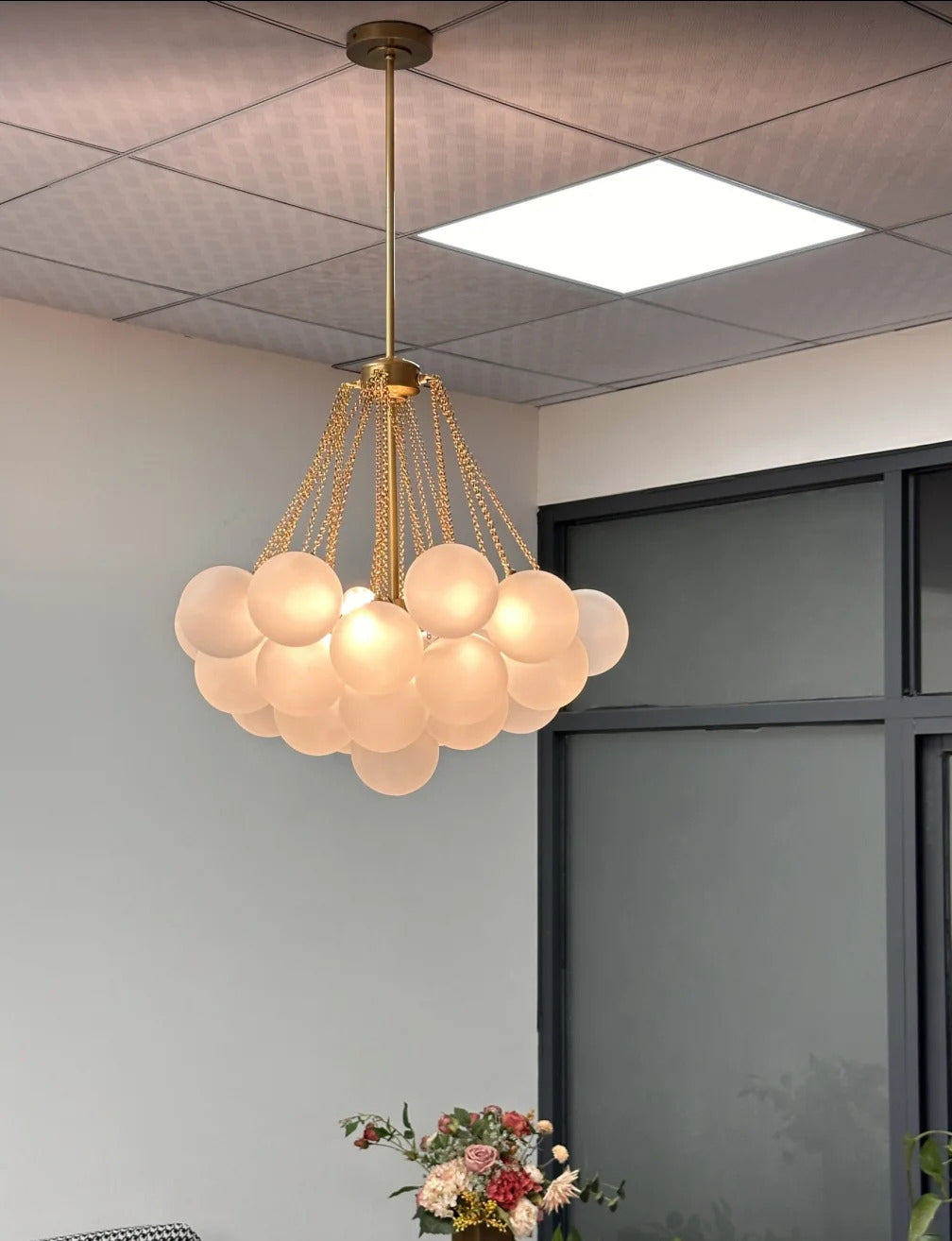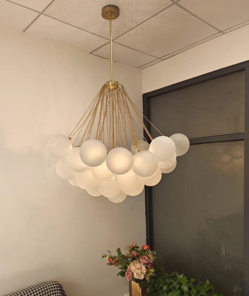 - At the heart of this design is a thoughtfully composed cluster of spherical lamps. Each "cloud" is not a single, static shape, but a dynamic arrangement of orbs, suspended at varying heights by nearly invisible fine chains. This creates a multi-dimensional, organic form that invites the eye to wander. From every angle—whether viewed from across the room or directly beneath its soft glow—the composition shifts, offering a unique and living sculpture. The design is intentionally simple in its components yet complex in its overall effect, ensuring it becomes the undeniable visual focal point of your dining area, living room, bedroom, or reading nook.