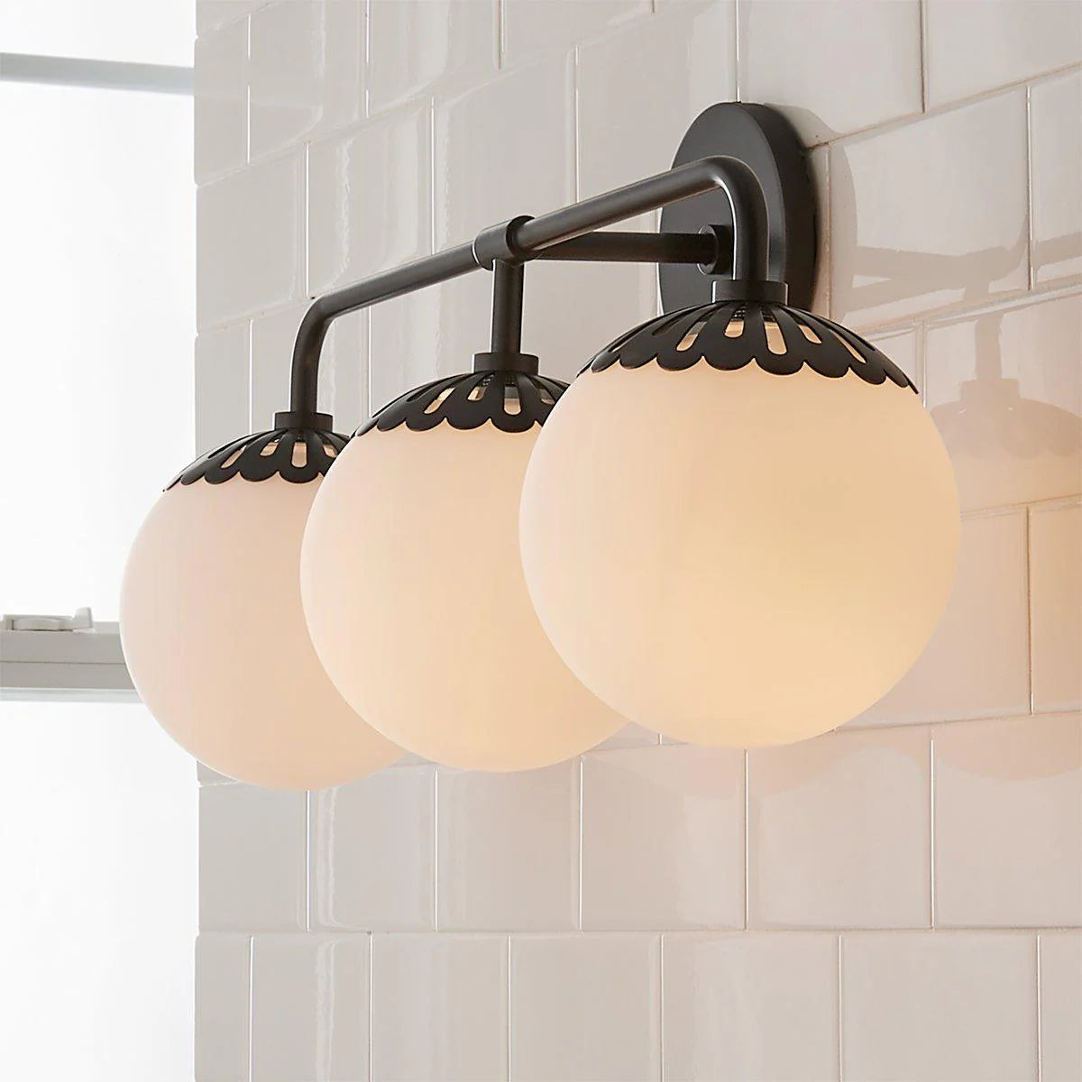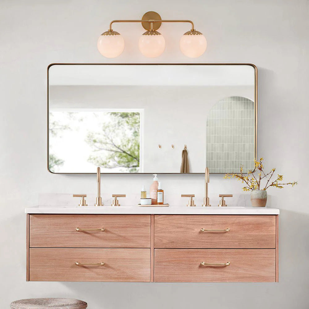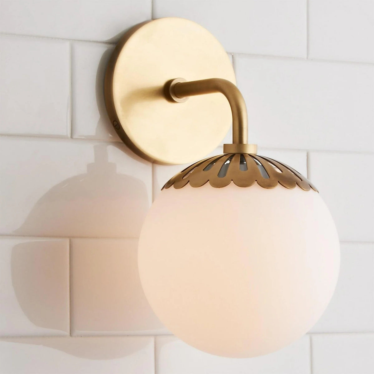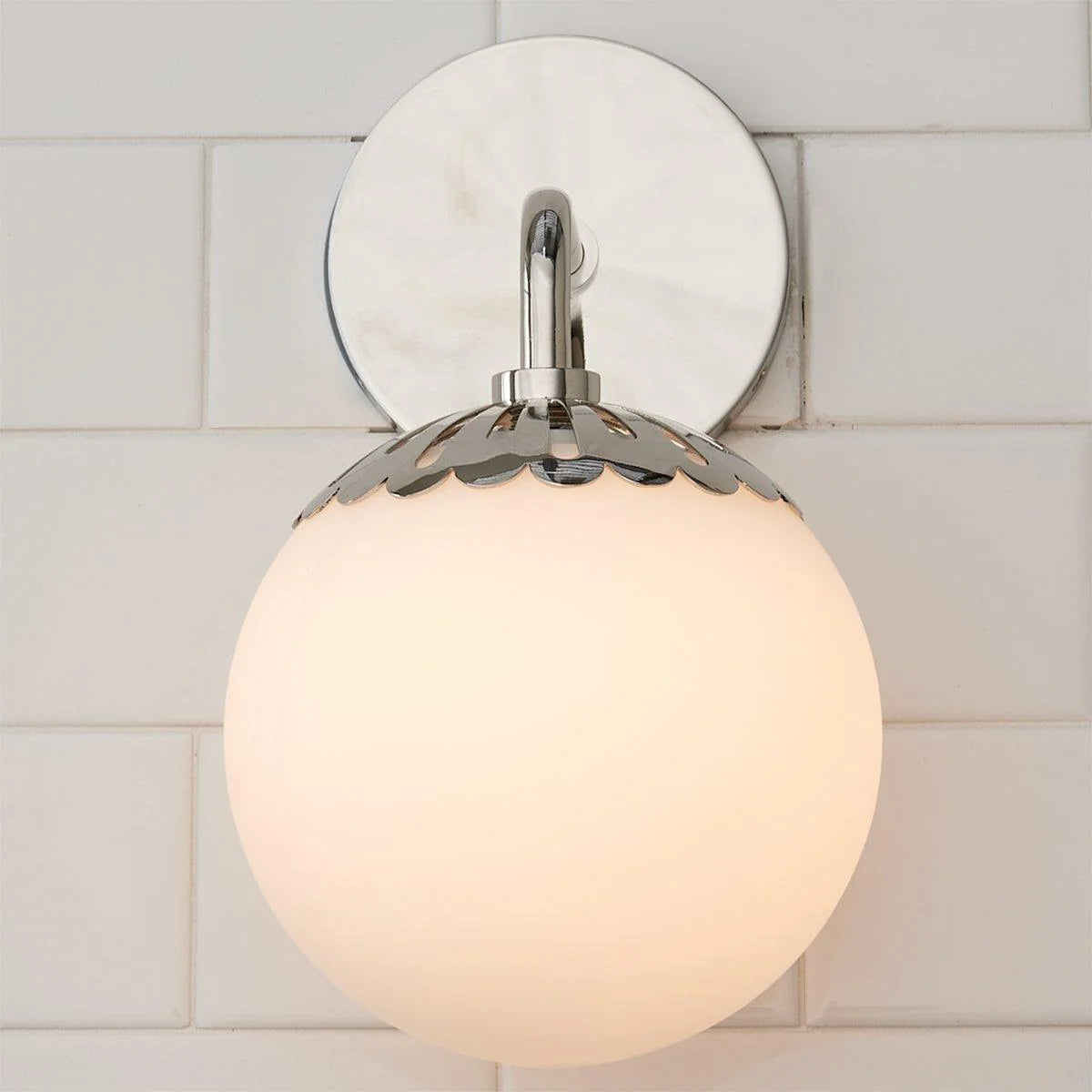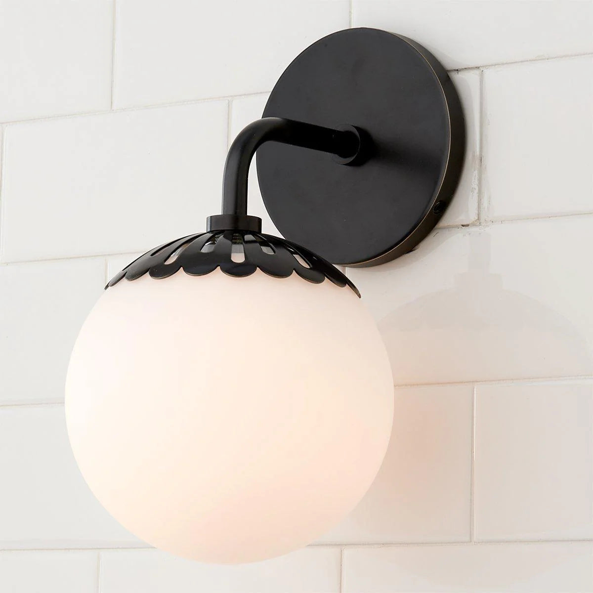 - Add a touch of timeless charm to your space with the Dewdrop Globe Sconce. This enchanting fixture features a delicate flower-shaped metal cap that cradles a glossy opal glass globe, creating a soft, diffused glow that’s both elegant and inviting. With its seamless blend of art deco flair and modern simplicity, this dimmable 1-light sconce is the perfect accent for cottage-style or mid-century interiors.