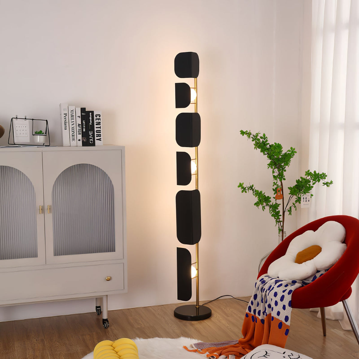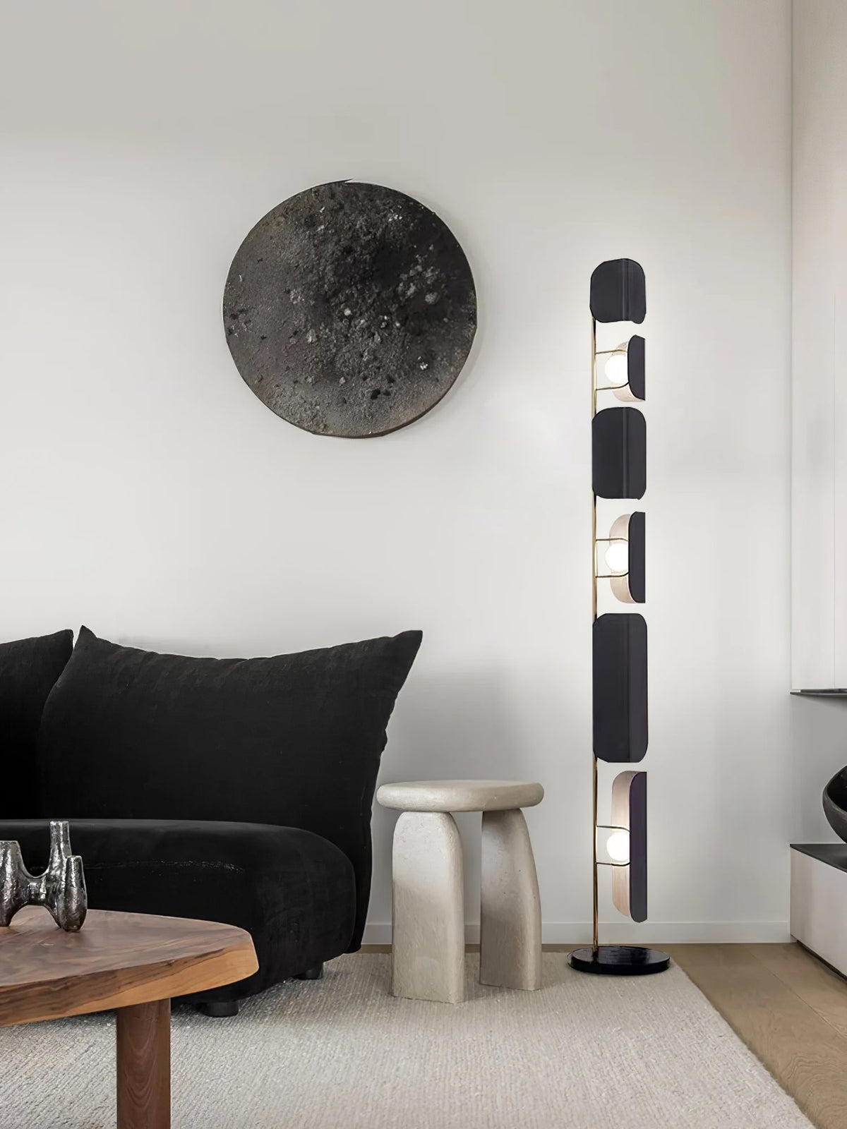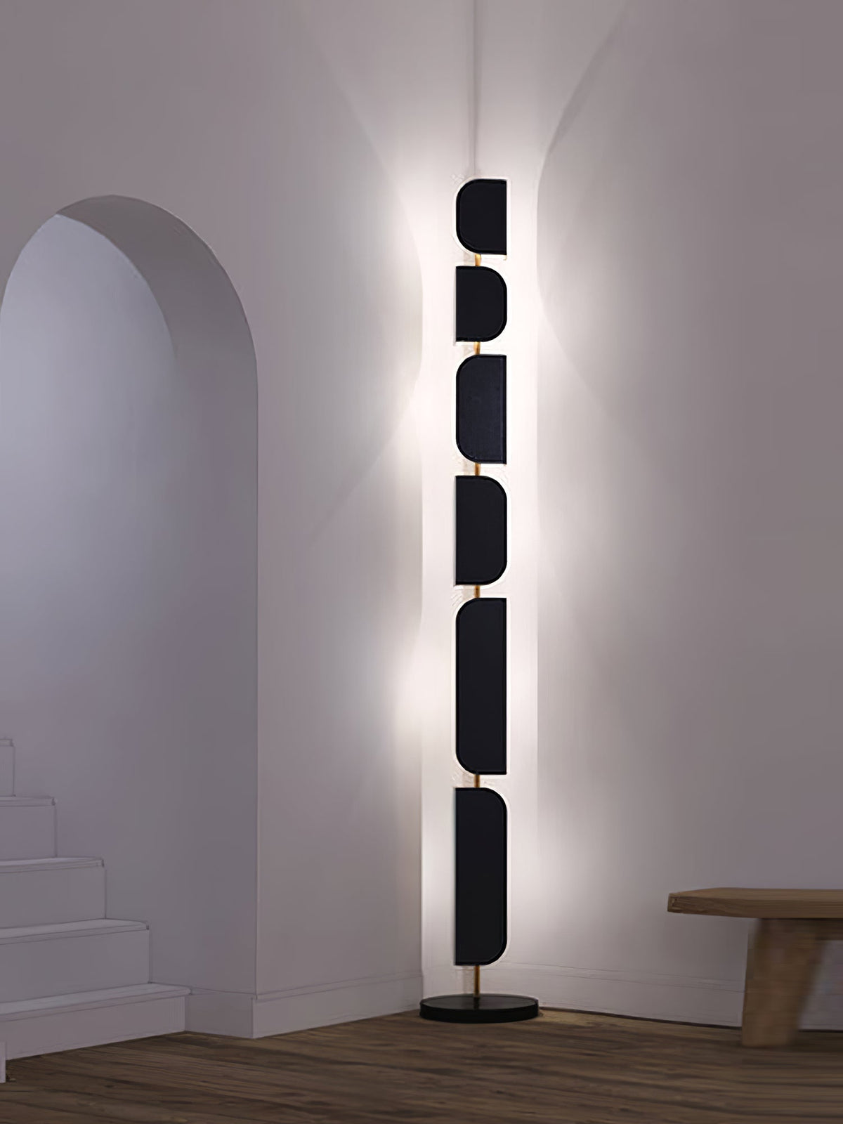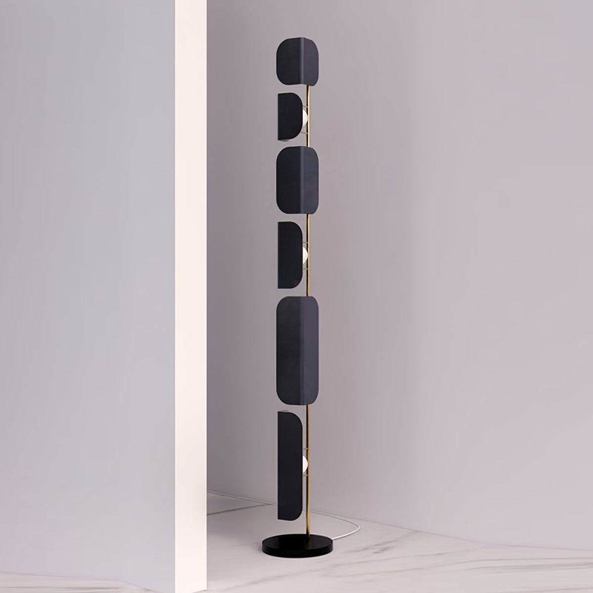- Freibert Floor Lamp is made of folded metal shades facing different directions to provide an elegant background light to the walls. The base is made of a heavy piece of marble that is elegant and mysterious. It will be perfect for you to decorate your modern style home!