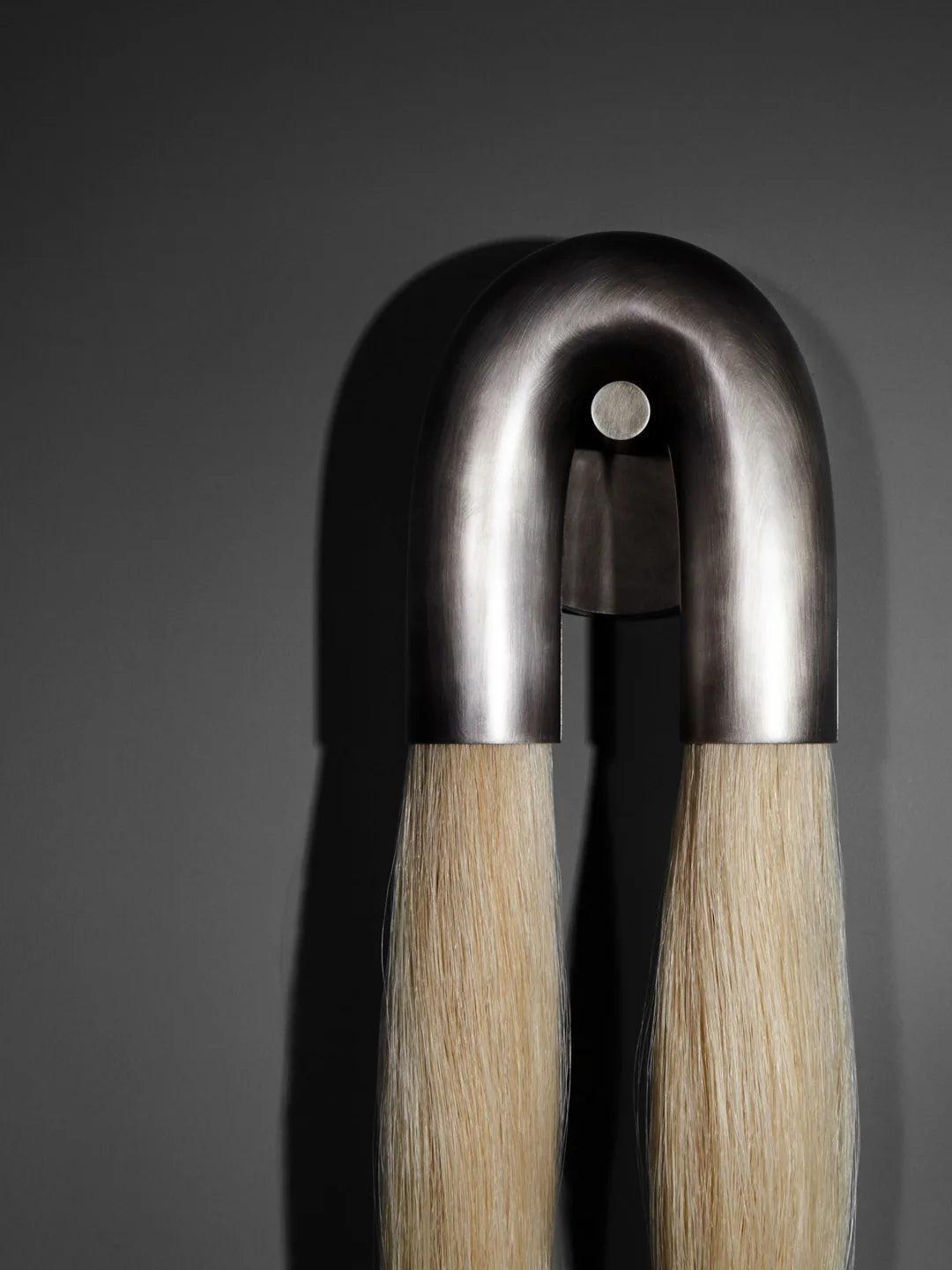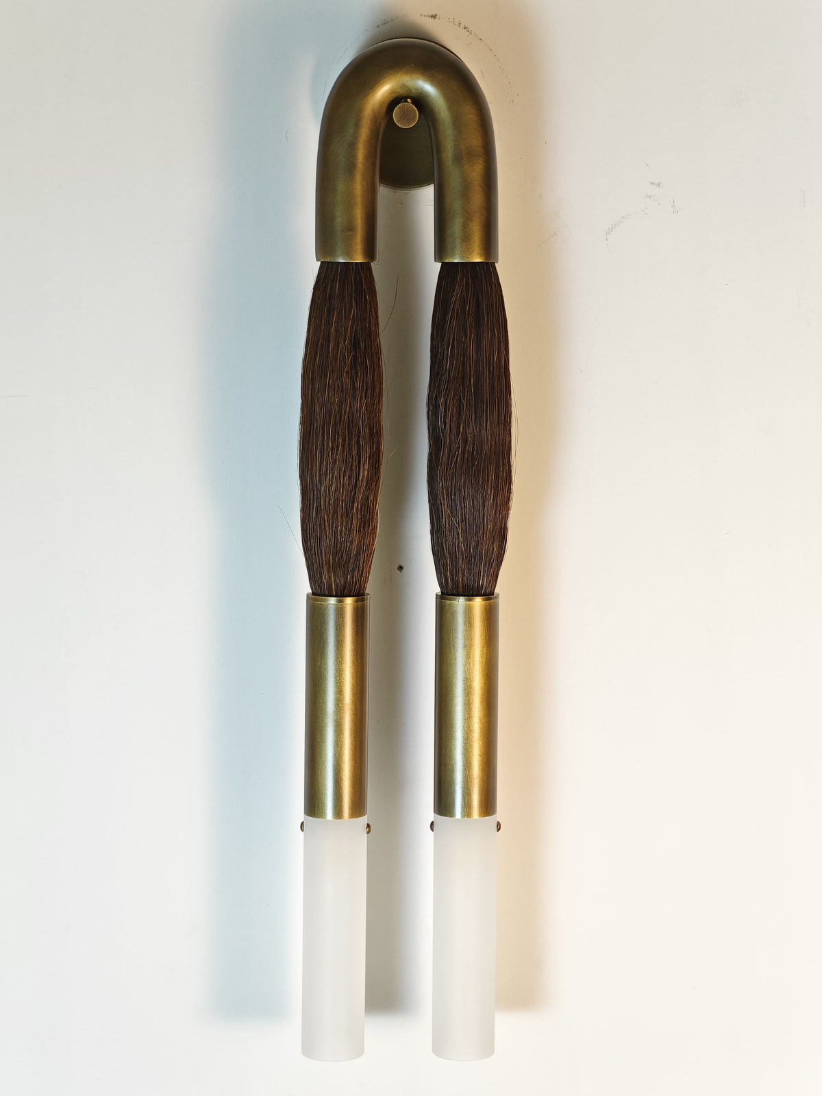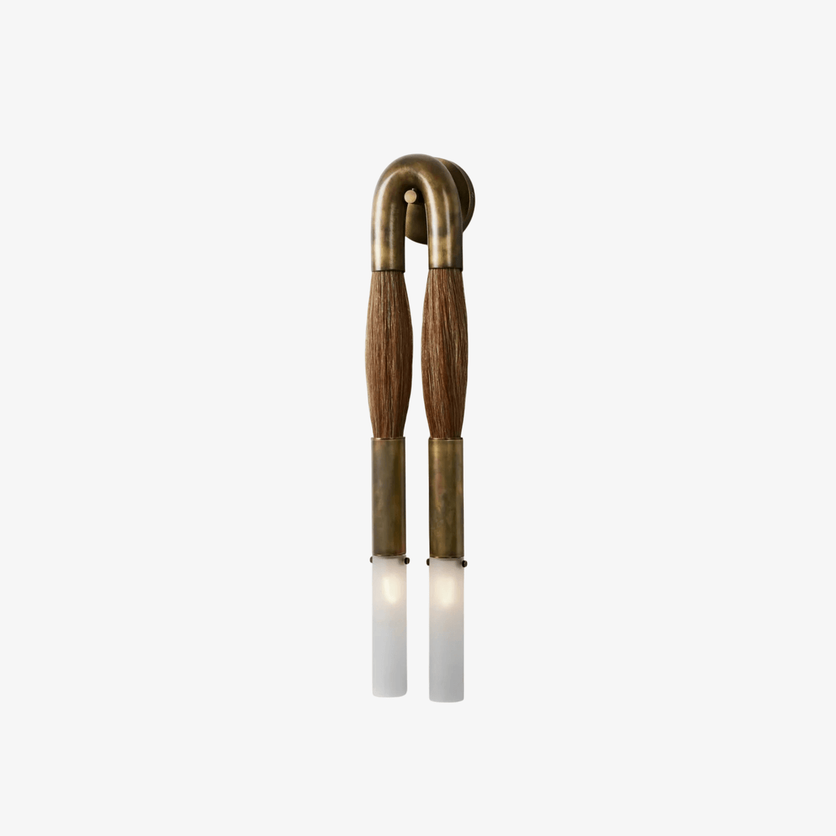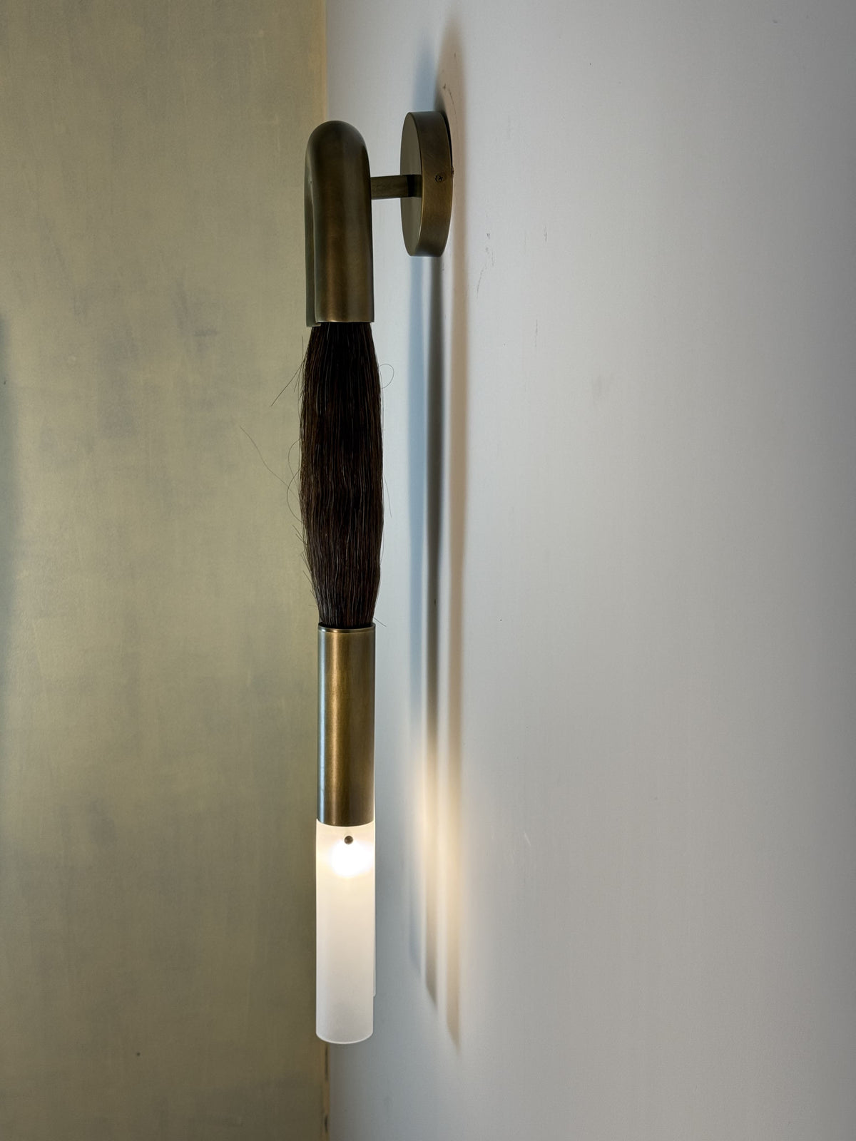 - Elevate your space with the Horsehair Sconce, a captivating blend of organic texture and refined craftsmanship. Tightly woven wefts of horsehair suggest structural integrity, while the gracefully draped brass form—cast to appear casually slung over a peg—adds an artful, effortless charm.