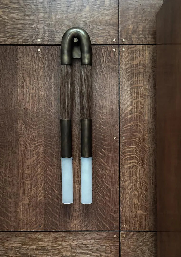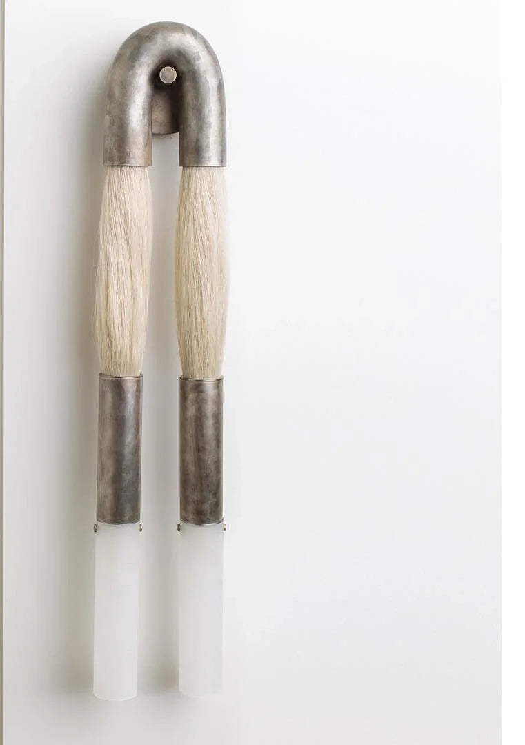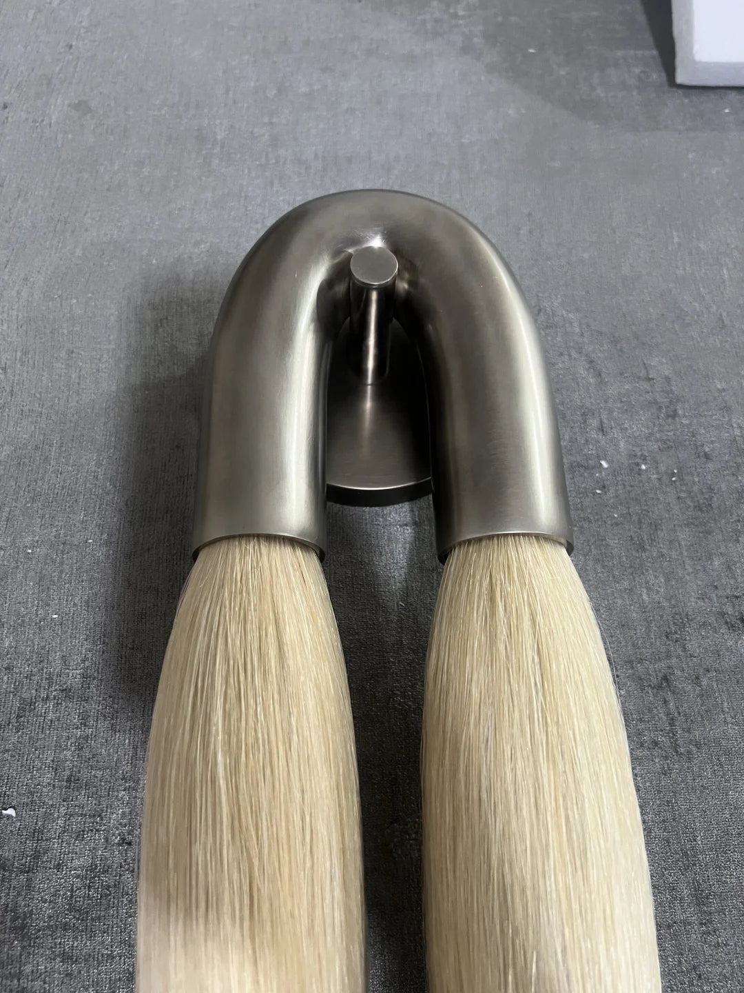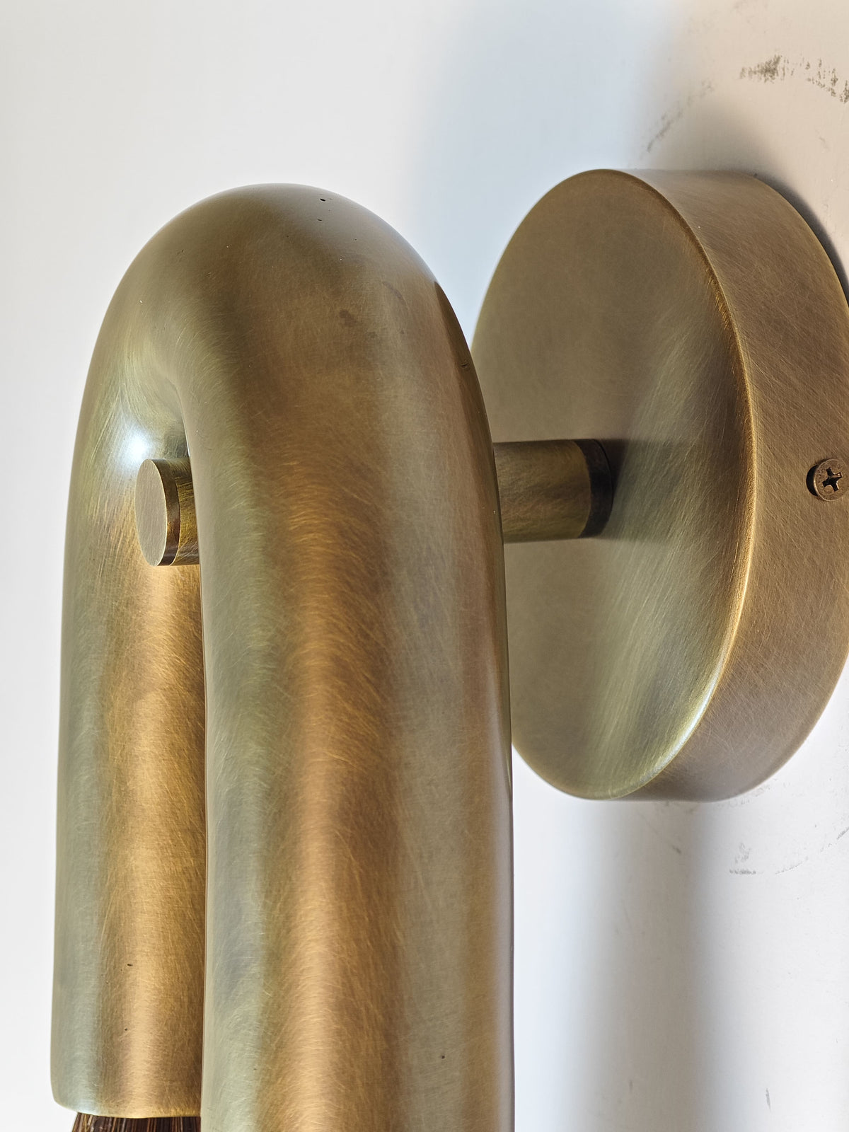 - Elevate your space with the Horsehair Sconce, a captivating blend of organic texture and refined craftsmanship. Tightly woven wefts of horsehair suggest structural integrity, while the gracefully draped brass form—cast to appear casually slung over a peg—adds an artful, effortless charm.