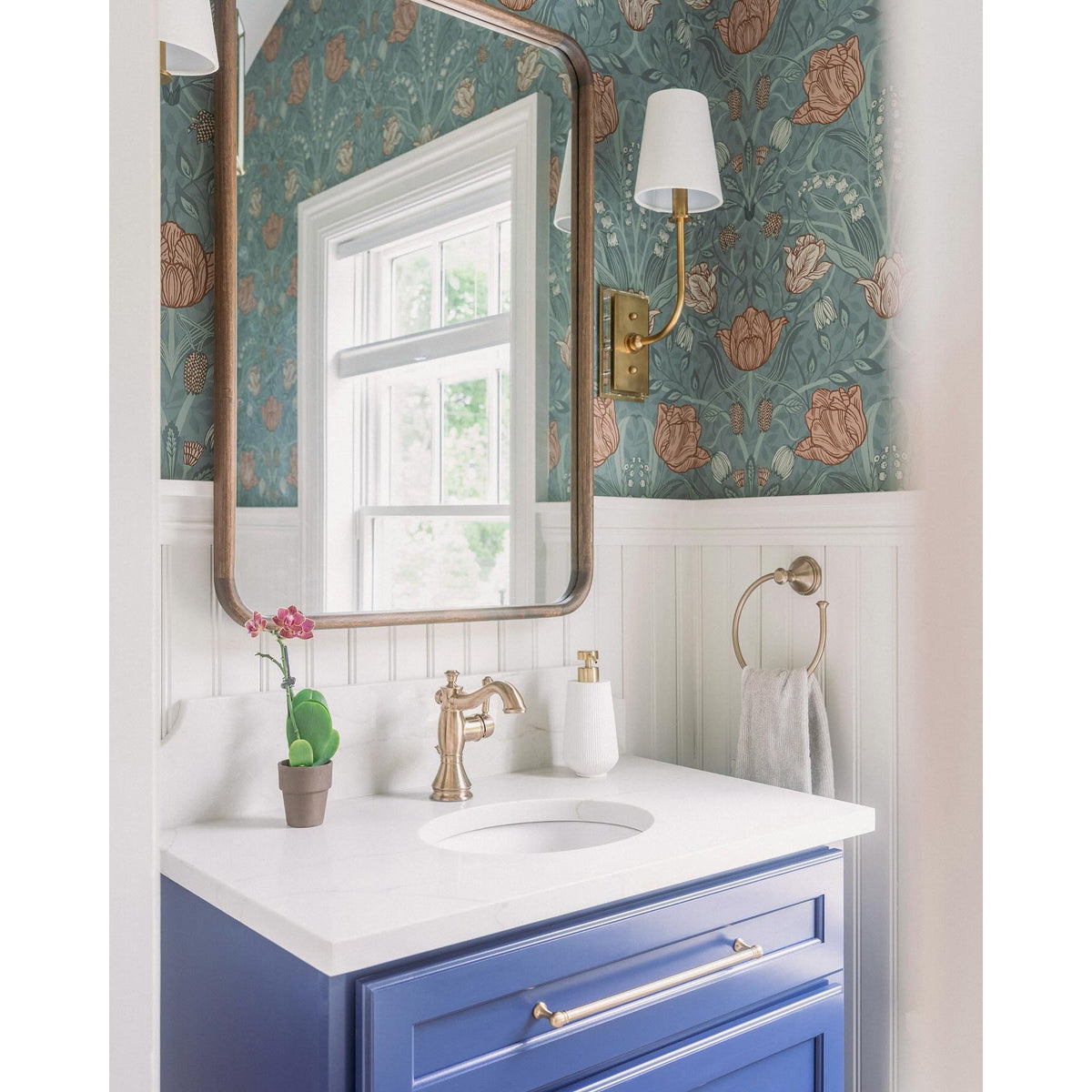• The Hulton Sconce have slender, gracefully curved brass arms are accented by crystal detailing.