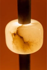 - Introduce a gallery-worthy centerpiece that casts a mesmerizing, warm glow. The Jupiter Totem Floor Lamp is more than just a light source; it's a statement of modern artistry and serene elegance. Expertly crafted by stacking smooth, hand-carved alabaster stone blocks on a sturdy metal base, this lamp is a sculptural tribute to both design and nature.