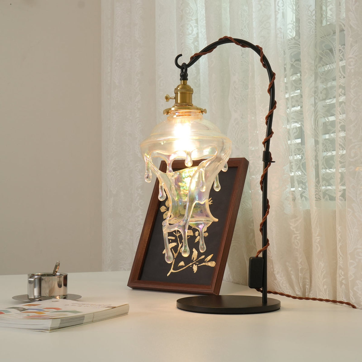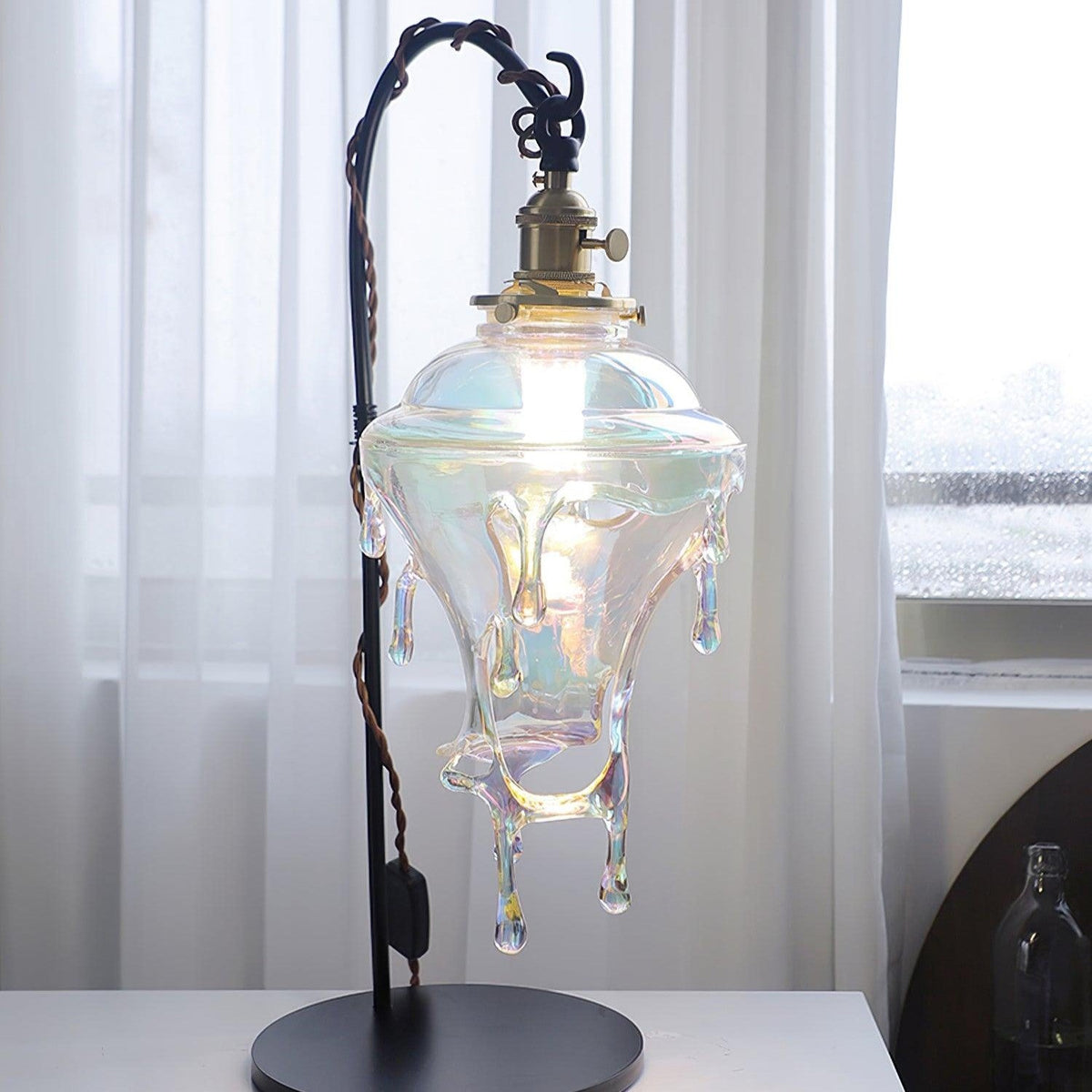 • Experience the enchanting allure of the Littrell Table Lamp, a captivating piece that merges artistry and functionality. This exquisite lamp features resin that emulates the organic beauty of water droplets delicately dripping off its surface. Available in two stunning variations—an elegant stained resin version that casts charming hues when illuminated, and a clear resin version that offers a timeless, minimalist aesthetic.