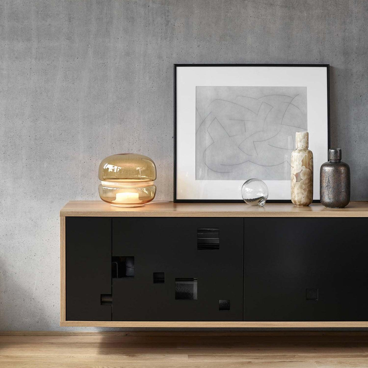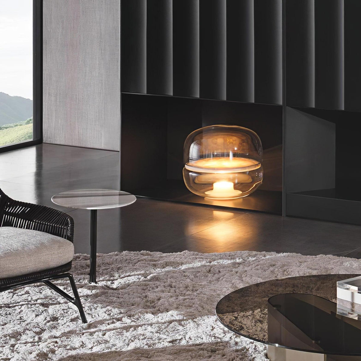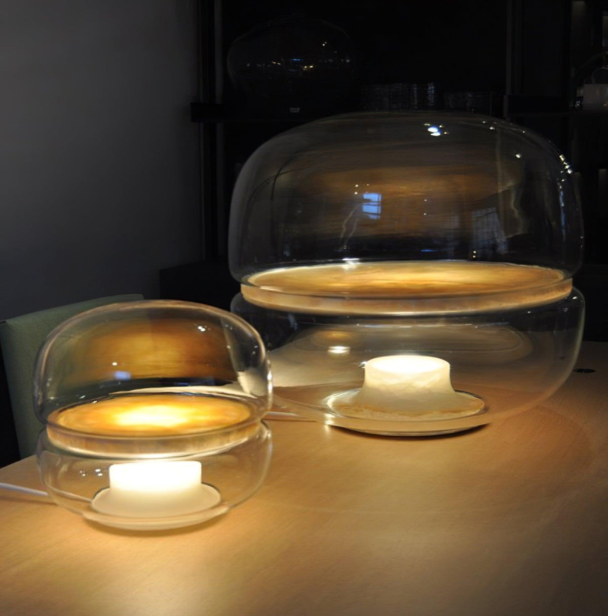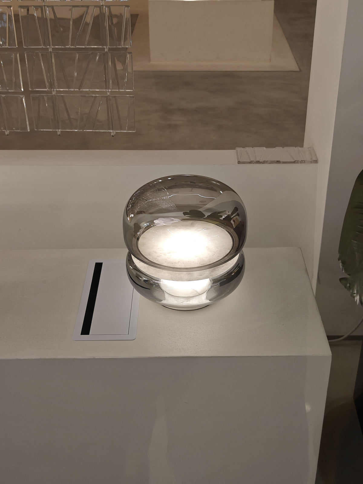 - The "Macaron" name aptly describes the lamp's elegant, double-domed form, reminiscent of the beloved French confection. Each piece is a unique creation, celebrating the natural variations in the stone and the subtle imperfections inherent in handblown glass.