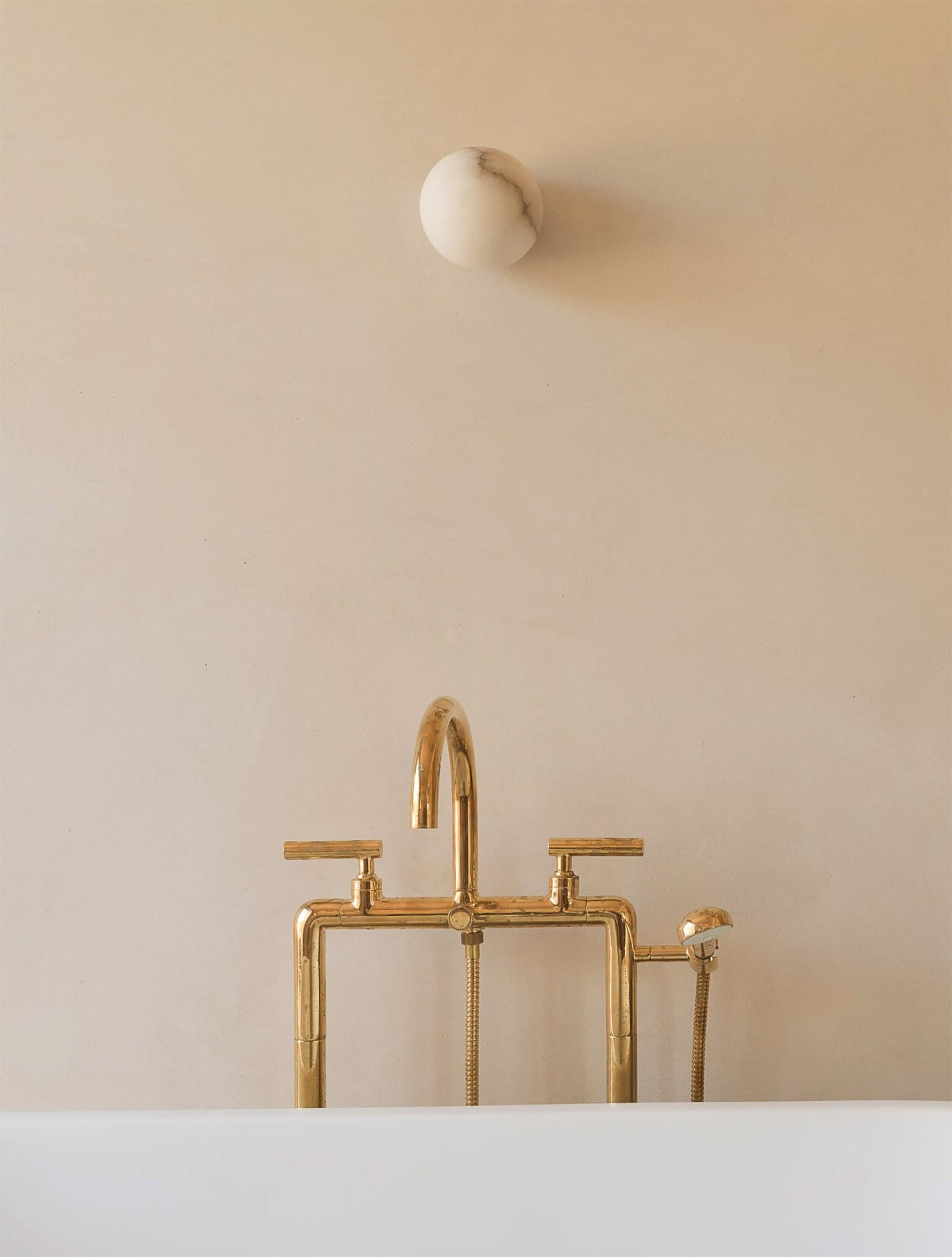 - Elevate your interior with the Stecher Alabaster Orb Wall Sconce, a stunning piece that combines elegance and natural beauty. The exquisite spherical sherbet shade, crafted from alabaster, creates a soft, ethereal glow that illuminates your space. The ultra-thin canopy ensures a sleek and minimalist appearance, making this sconce an absolute focal point on your wall. Each sconce showcases unique, naturally occurring lines, adding a touch of individuality to your décor.